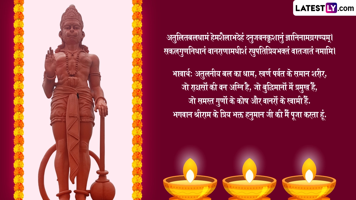 अर्थ: ज्याचे बल अतुलनीय आहे, ज्याचे शरीर सोन्याच्या पर्वतासारखे तेजस्वी आहे आणि जो ज्ञानी लोकांमध्ये अग्रगण्य आहे, अशा हनुमानाला मी वंदन करतो.