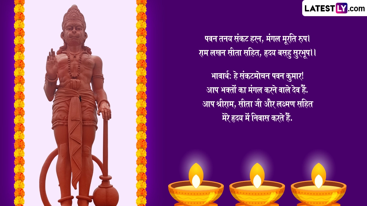 अर्थ: अंजनीपुत्र, ज्याचे मुख गुलाबासारखे लाल आहे आणि ज्याचे शरीर सुवर्ण पर्वताप्रमाणे सुंदर आहे, त्या हनुमानाला माझे नमन.