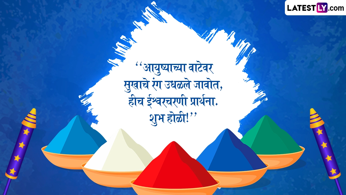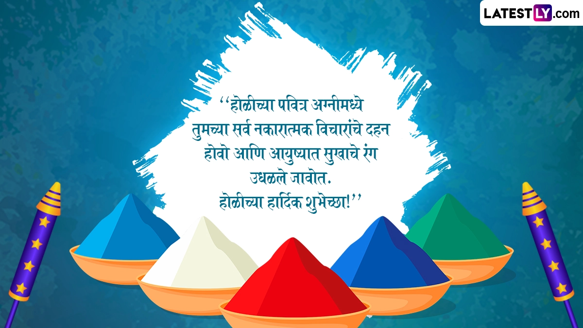 "होळीच्या पवित्र अग्नीमध्ये तुमच्या सर्व नकारात्मक विचारांचे दहन होवो आणि आयुष्यात सुखाचे रंग उधळले जावोत. होळीच्या हार्दिक शुभेच्छा!"