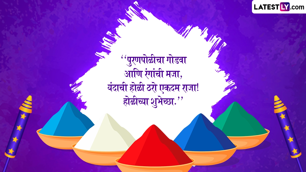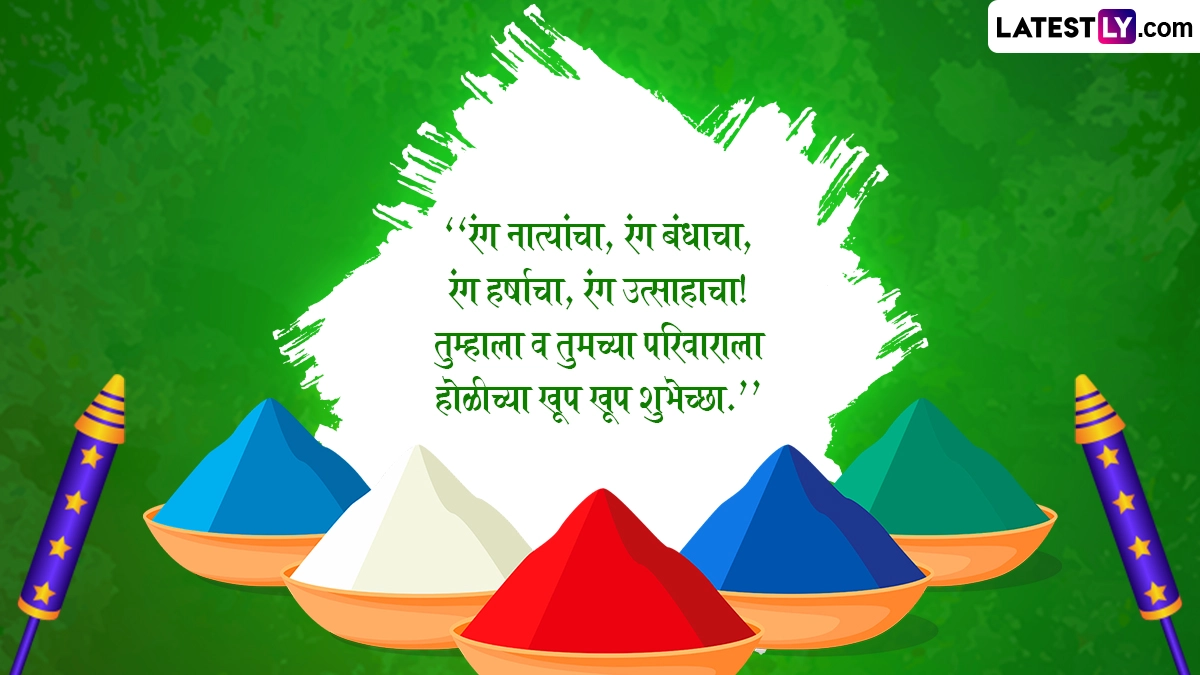 "रंग नात्यांचा, रंग बंधाचा, रंग हर्षाचा, रंग उत्साहाचा! तुम्हाला व तुमच्या परिवाराला होळीच्या खूप खूप शुभेच्छा."